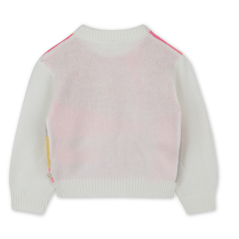 De Billieblush gebreide trui in de kleur Ivory combineert warmte, comfort en een vleugje glamour. De vrolijke illustratie op de voorkant — deels versierd met glinsterende pailletten — maakt deze trui tot een echte blikvanger. Het zachte breisel zorgt voor een heerlijk draagcomfort, ideaal voor zowel alledaagse looks als feestelijke momenten.