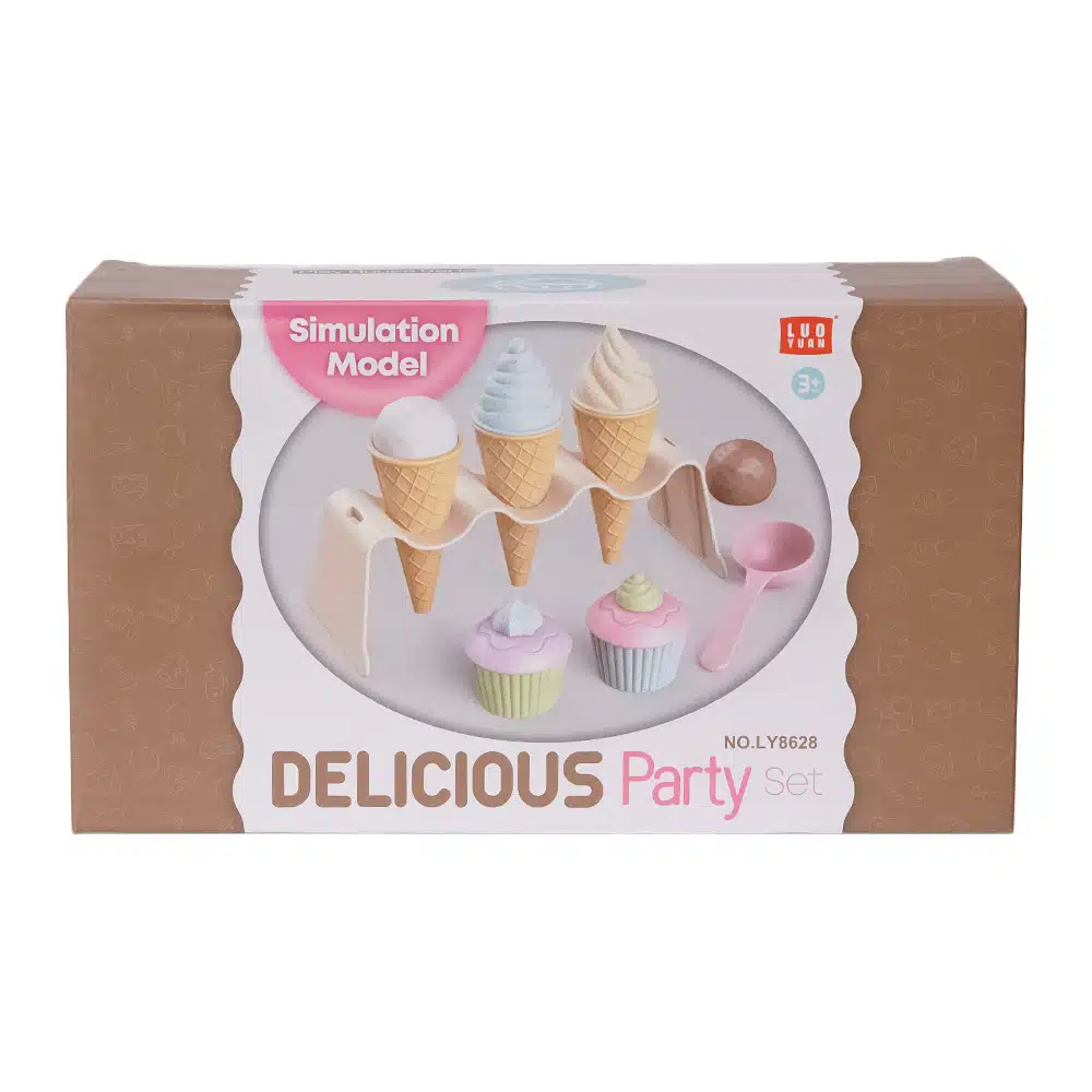 • Inclusief ijshoorntjes, bolletjes ijs, cupcakes, ijsschep en houder