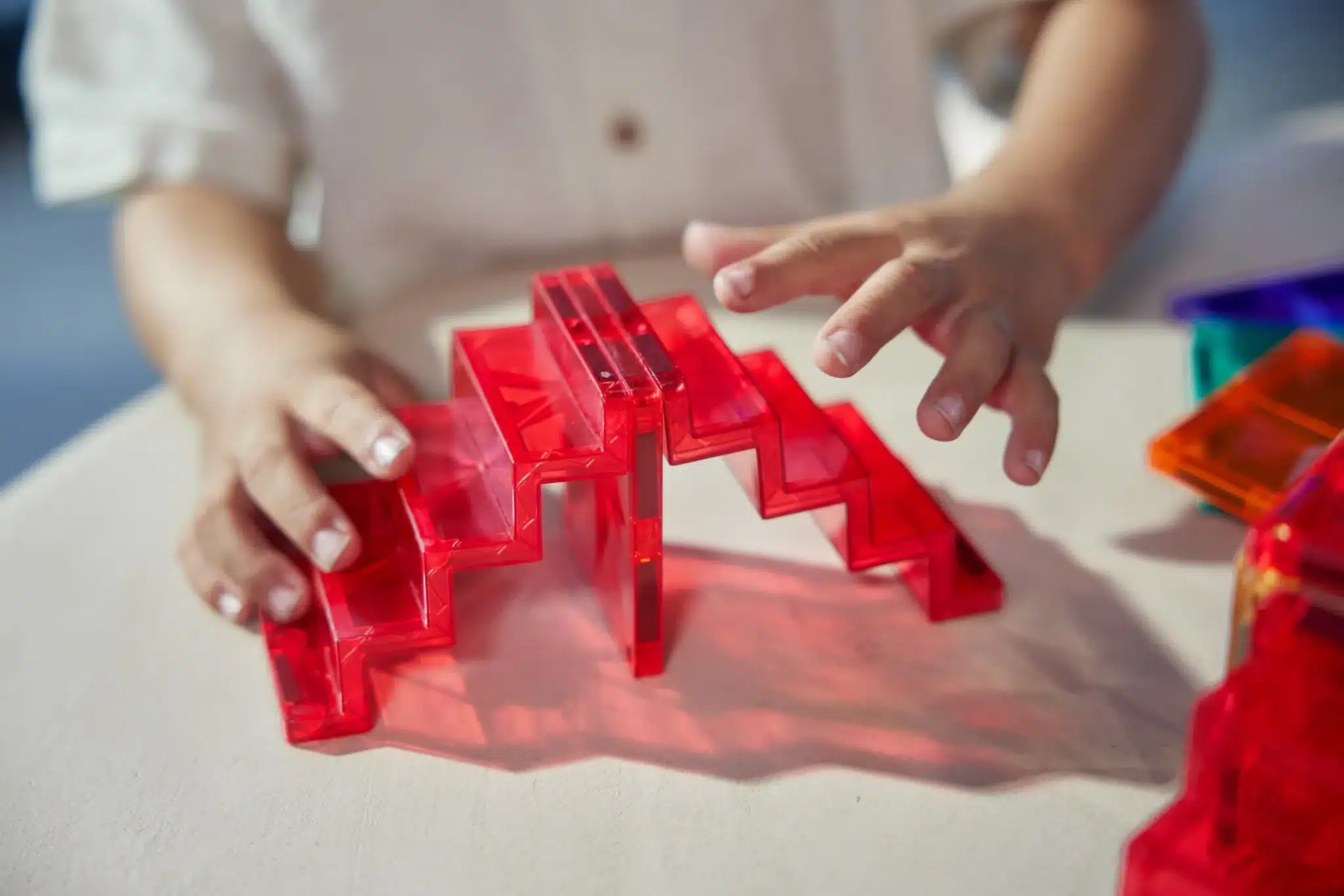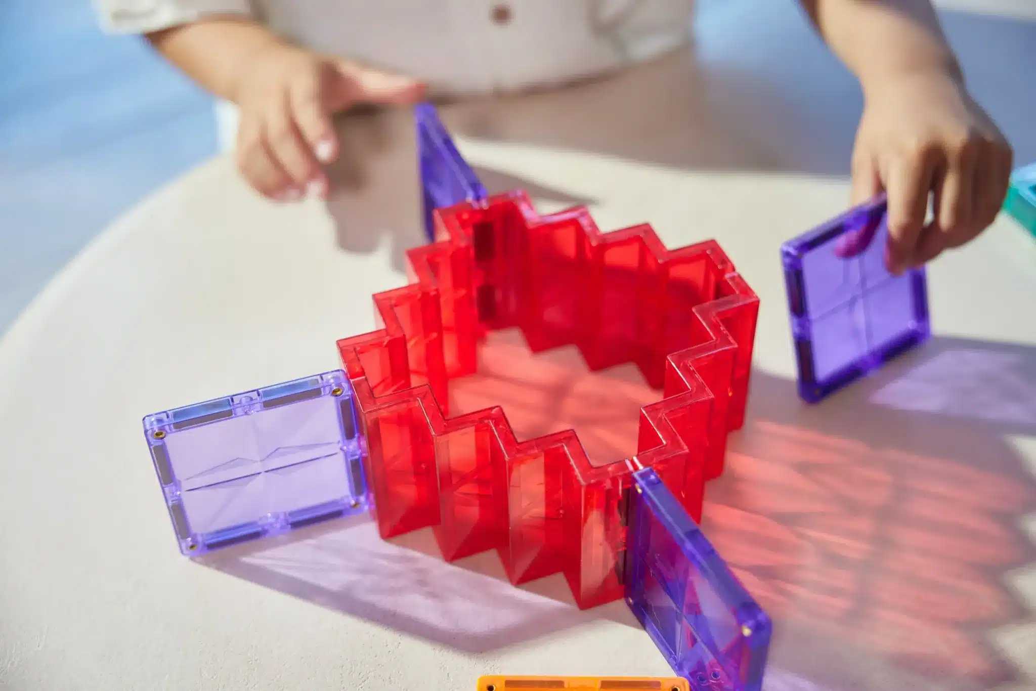 De tegels klikken soepel aan elkaar en stimuleren spelenderwijs STEAM-ontwikkeling: kinderen leren vormen, kleuren, balans en ruimtelijk inzicht terwijl ze vol fantasie bouwen.