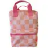 Travel with joy! Met deze rugzak in roze en perzik achtige kleuren ga je met een glimlach op je gezicht op pad. Een vrolijke combinatie van fijne, zachte kleuren.