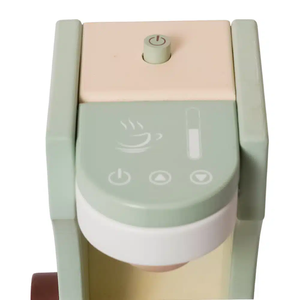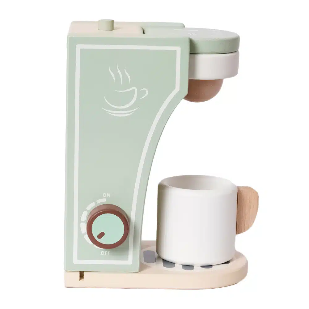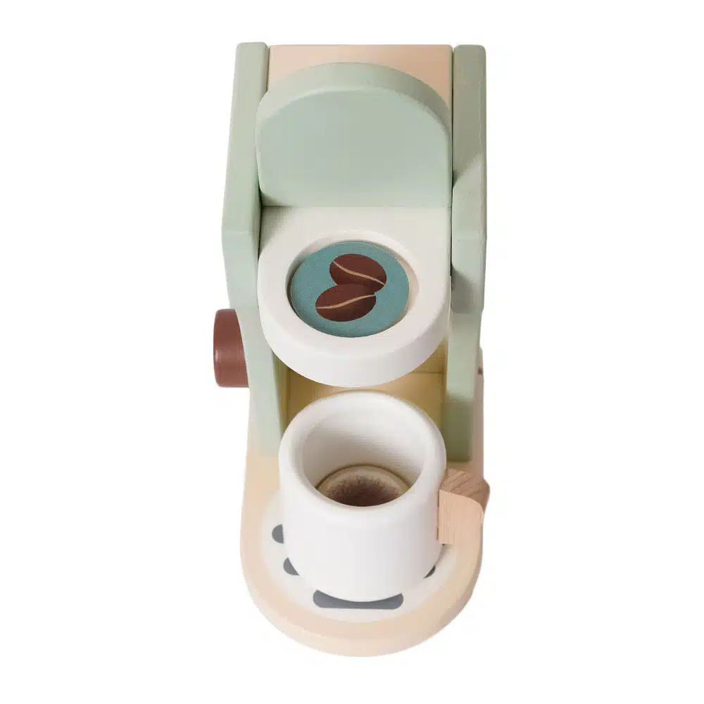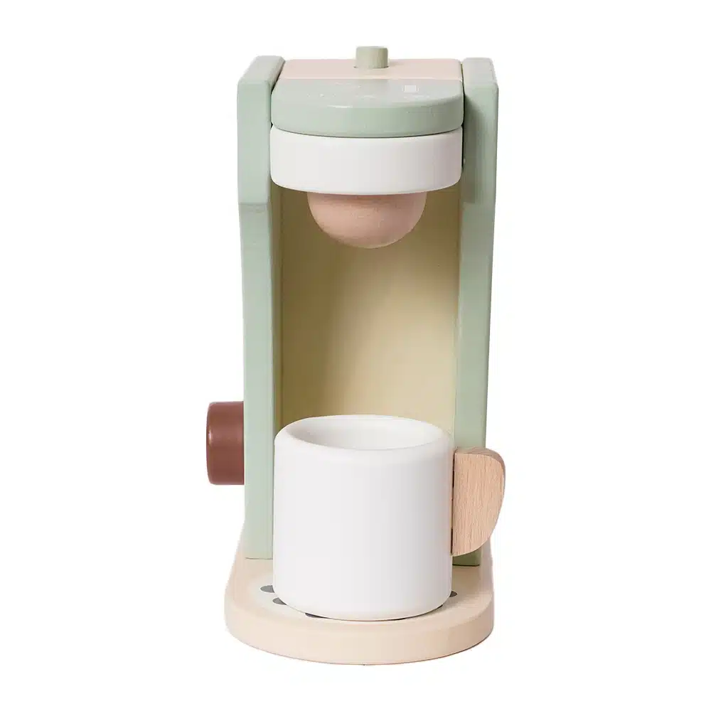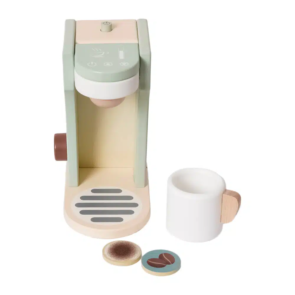 Met dit charmante houten koffiemachientje kunnen kinderen zelf de lekkerste kopjes koffie โzettenโ voor hun familie of vriendjes. Het speelsetje bestaat uit een modern vormgegeven koffiemachine met bijpassende koffiekop en twee houten koffiepads die precies in de machine passen.