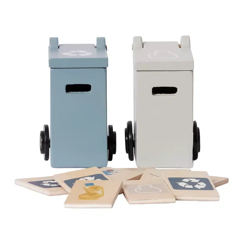 Deze stoere houten vuilniswagen maakt afval opruimen pas รฉcht leuk! De set bestaat uit een stevige truck, twee losse vuilnisbakken en meerdere houten kaartjes met verschillende soorten afval. In totaal zijn er 13 onderdelen en het speelgoed is speciaal ontworpen voor kinderen vanaf 3 jaar.