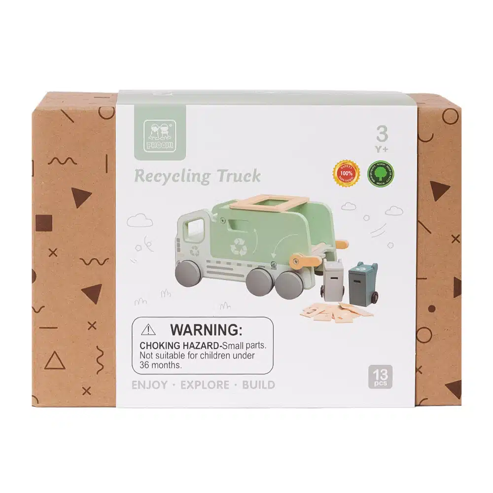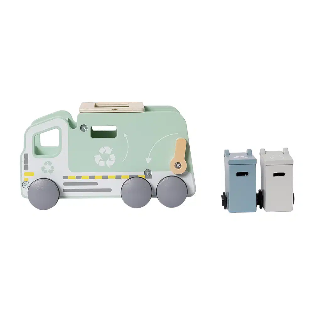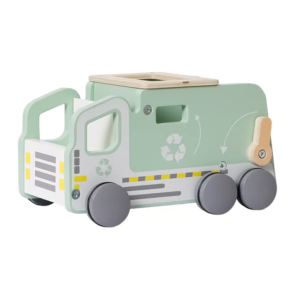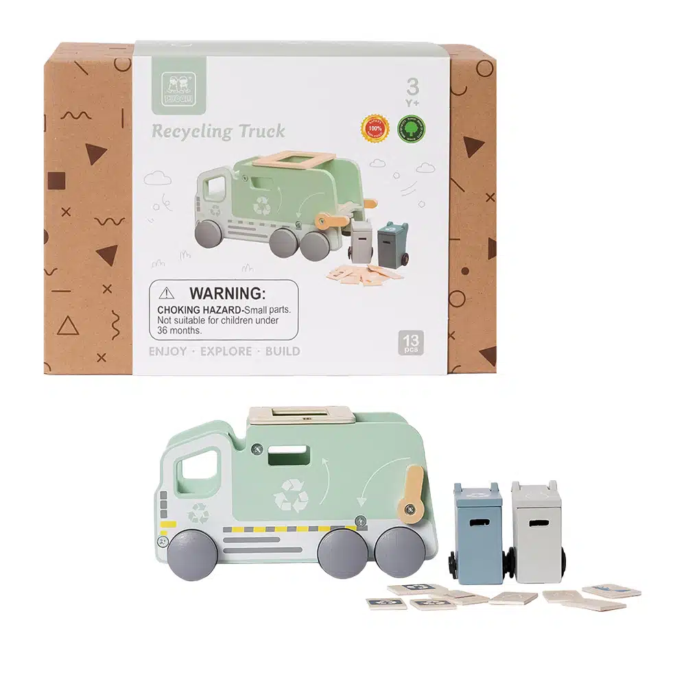 Spelenderwijs ontdekken kinderen hoe afval scheiden werkt en leren ze meer over recycling. De vrachtwagen en accessoires zijn gemaakt van hout, waardoor ze stevig en veilig zijn voor kinderen. Dit speelgoed stimuleert de fijne motoriek, fantasie en rollenspel, en helpt kinderen op een leuke manier bewust te worden van het milieu.