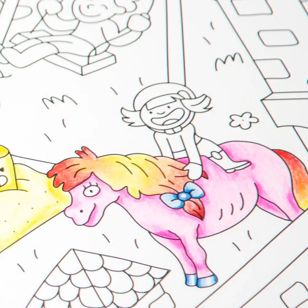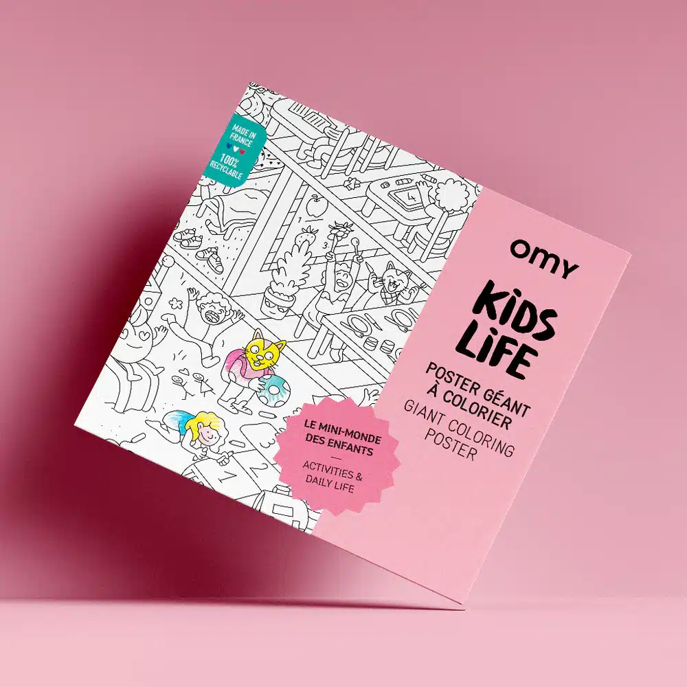 Duik in de vrolijke wereld van OMY’s Kids Life Poster — een kleurposter vol herkenbare momenten uit het dagelijks leven van kinderen! Van spelen op het schoolplein en fietsen in de stad tot feestjes, huisdieren en grappige alledaagse taferelen — deze poster zit boordevol humor, details en vrolijke scènes om urenlang in te kleuren.