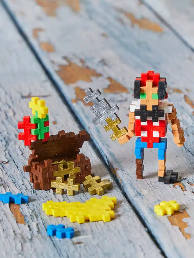 Met de piraat tube bouw je je eigen piratenschat-eiland, een stoer schip met witte zeilen of een geheime plek vol goud. De kleurrijke Plus-Plus steentjes dagen je uit om eindeloos te bouwen, ontdekken en avonturen te beleven.